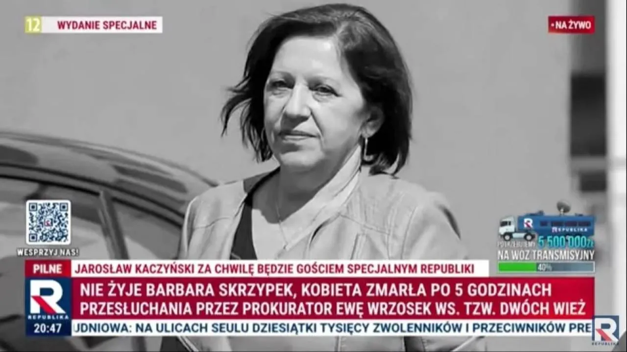 W związku z poruszającą informacją o śmierci Barbary Skrzypek, która została przesłuchana w charakterze świadka w środę 12 marca 2025 r. w Prokuraturze Okręgowej w Warszawie w związku z postępowaniem dot. tzw. sprawy „dwóch wież”, uprzejmie informujemy, że przesłuchanie trwało…